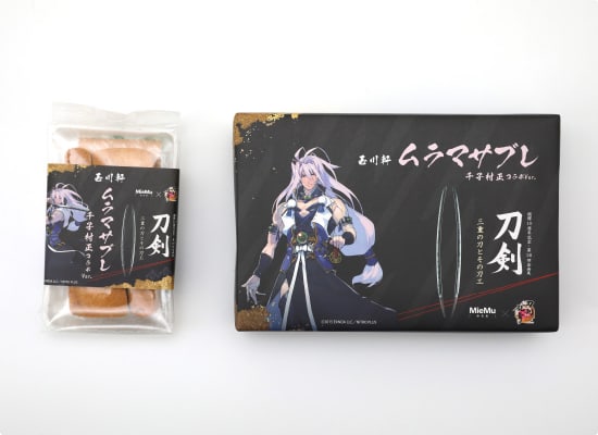 三重県桑名市の老舗和菓子店、玉川軒のムラマサブレがコラボパッケージになりました。村正の茎(なかご)を模した米粉サブレです。
